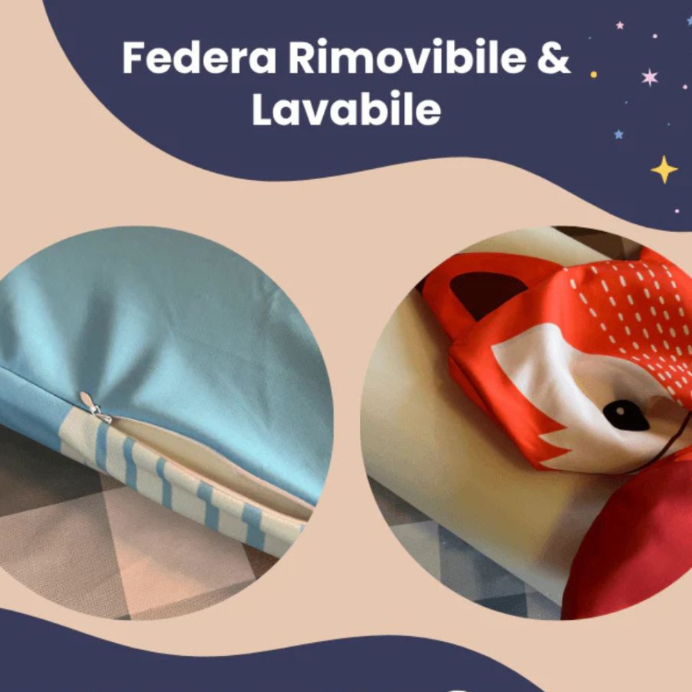"Il Cuscino Coccola è pensato per semplificarti la vita. Completamente lavabile in lavatina a 30°C, mantiene forma e morbidezza lavaggio dopo lavaggio. Leggero e pratico, si adatta a ogni momento della giornata: dal riposino pomeridiano alla nanna della sera. Prendersi cura del tuo bambino non è mai stato così semplice."